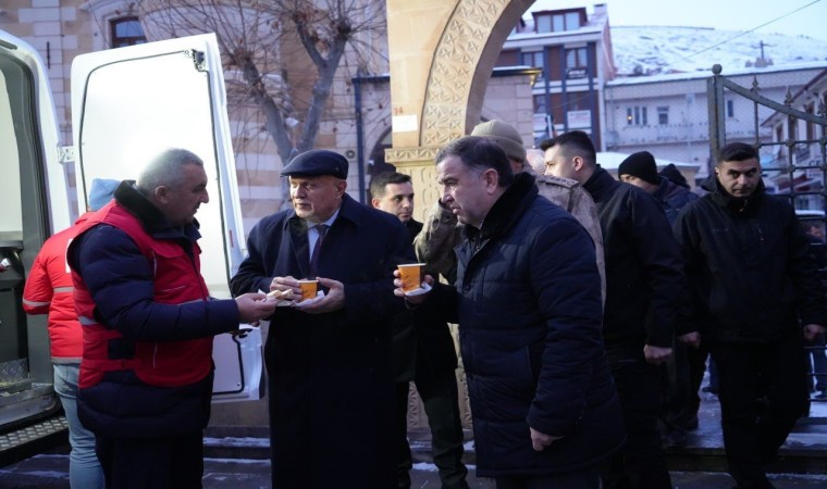 Namaz sonrası camiden çıkan cemaate Kızılay tarafından çorba ikramında bulunuldu.