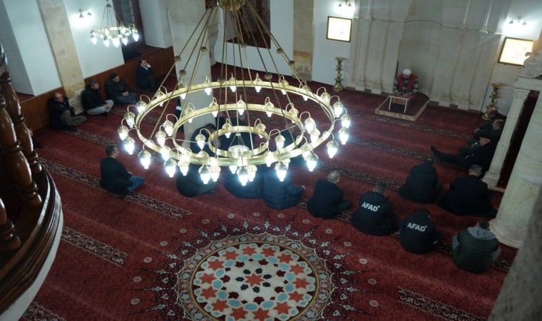 Yeni Camii’nde düzenlenen mevlid-i şerif programında eller semaya 6 Şubat’ta yaşanan asrın felaketinde hayatını kaybeden vatandaşlar için kaldırıldı, deprem şehitleri dualarla yâd edildi.