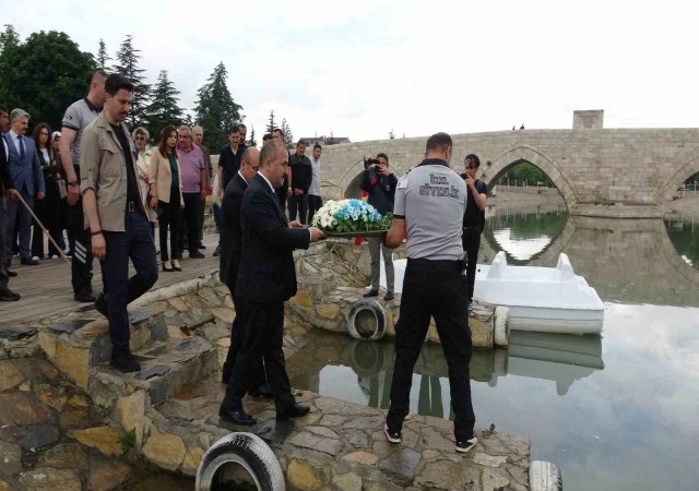 Tokat’ta depremde hayatını kaybeden vatandaşlar için Yeşil ırmağa saygı çelengi bırakıldı.