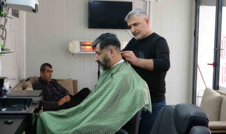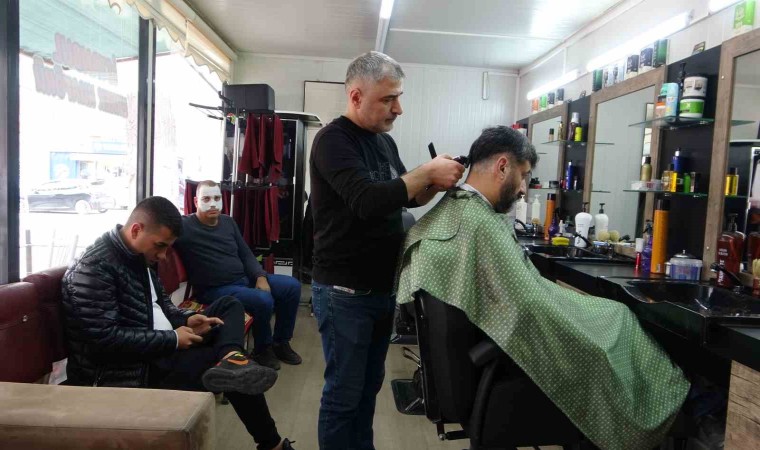 Malatya’da, Kahramanmaraş merkezli depremlerde iş yeri yıkılan 40 yıllık berber Coşkun Alataş, konteynerde mesleğini sürdürüyor. Alataş gelecek için umutlu olduğunu söyledi.