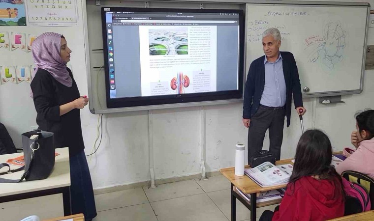 Asrın felaketinde enkaz altında kalan ve 48 saat sonra enkazdan çıkartılarak iki bacağı ampute edilen Adıyaman Menderes İlkokul Müdürü İsmet Kaya, protez bacaklarla eğitime camiasının bir neferi olmaya devam ediyor.