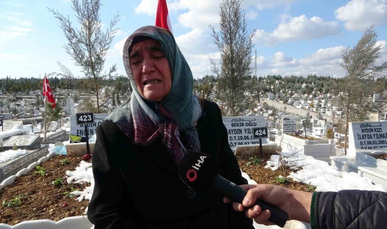 Mezarlığın evi olduğunu kaydeden Azet Yılmaz, ”Oğlum gelinim ve iki torunumu ilk depremde kayıp ettim. 38 saat enkaz altında kaldılar. Daha sonra tek tek çıkarıldılar. Mezarlığa her gün geliyorum benim evim burası artık. Eve gidiyorum yattıktan sonra sabah olmasını bekliyorum, mezarlığa gelmek için gelirler diye yollarını gözlüyorum, çok özledim. Kız torunumu doğum gününde toprağa verdik. Engin ise 15’ine yeni girmişti" diye konuştu.