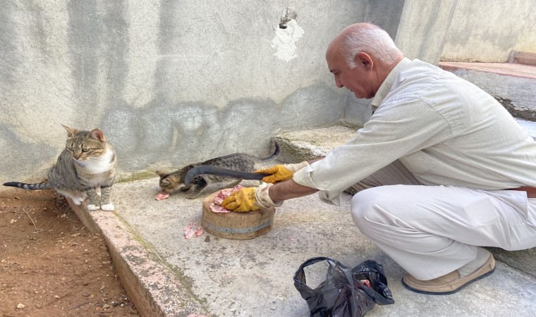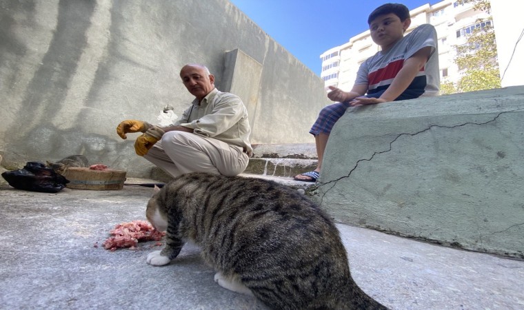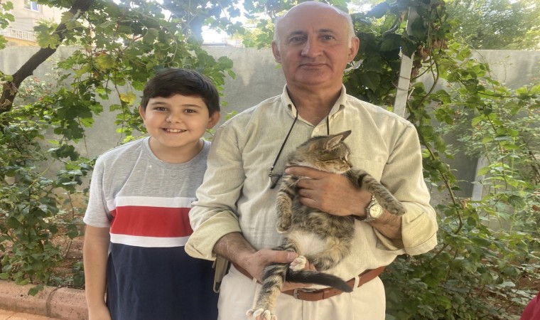Kahramanmaraş’ta depremde bacağı kırılan anne kedi ve yavru kediyi kendi imkanları ile tedavi edip iyileştiren dede ile torunu, iki kediye gözleri gibi bakıyor.
