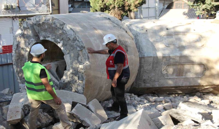 6 Şubat depreminde yan taraftaki binanın üzerine devrilmesi sonucu yıkılan Adıyaman Ulu Cami’de restorasyon çalışması başladı.