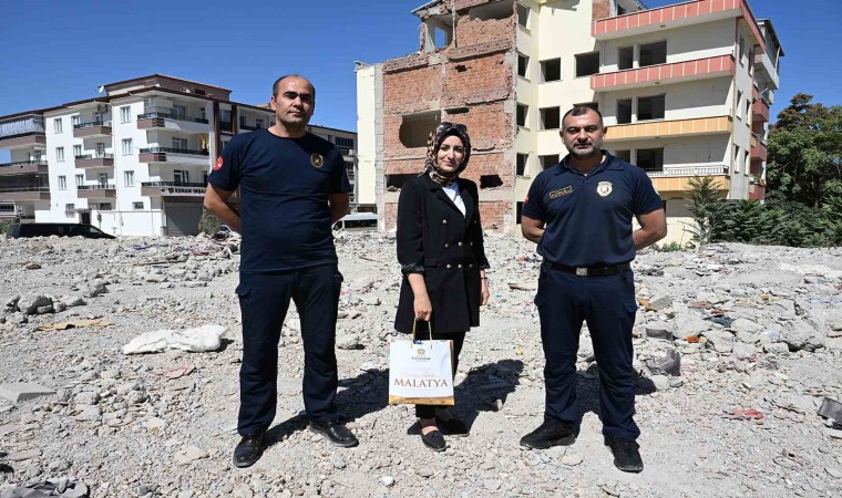 Malatya Büyükşehir Belediyesi İtfaiye Dairesi Başkanlığı ekipleri, 6 Şubat’taki depremlerde yıkılan Bayrak Apartmanı’nın enkazında buldukları özel eşyaları sahibine teslim ettiler. Depremzede Tuba Yaşar, “İtfaiye ekiplerinin bize ait eşyaları bulup getirmesi çok kıymetli, çünkü evimiz yıkıldı ve buradan bir küçük eşya bile çıkarıp bulmam benim için çok önemliydi" dedi.