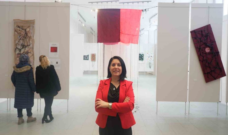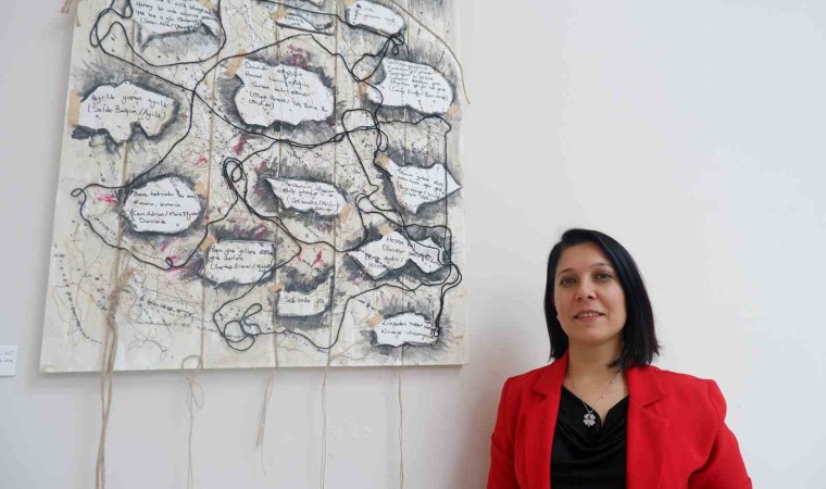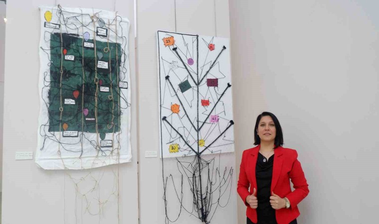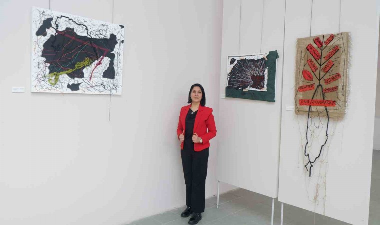 Kahramanmaraş’taki evlerinde ikamet ederken meydana gelen depremi kuşlarının sesi ile yaşamaya başladıklarını ifade eden Selcan Kalın, "Kuşumuzun kanat çırpması ve panik hali bizi uyandırdı. Daha sonra sarsıntı ile birlikte evimizin camları açılmaya başladı. Tek katlı evde yaşadığımız için en az zararla kurtulduk. Daha sonra hayat devam etti ve ben kendi yaşadıklarımı, insanların hüzünlerini ve acılarını anlatmak istedim. Böyle bir sergi oluşturdum. Günlük hayattaki ip ve kumaşları kullandım. 20 eser ortaya çıktı. Her bir eserimde ayrı bir hüzün ve gözyaşı var. Diğer insanların da yaşanmışlıklarını anlatmak istedim" şeklinde konuştu.
