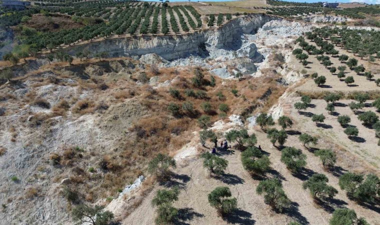 Depremden önce tarlanın birleşik olduğunu ifade eden Nezahat Sakarcıoğlu, bölgeden gelen patlama sesi sonrası yarığın oluştuğunu belirterek, “Deprem zamanı çok kötüydü ve çok korku oldu. Patlama seslerinden korktuk. Deprem zamanki korkularımızdan hiçbir şey göremedik. Zeytin hasadı başladı ve zeytinlerimizi topluyoruz. Burada zeytin toplarken korkuyoruz ama ekmek parası için toplamak zorundayız. Depremden önce tarla birleşikti ama depremden sonra böyle oldu. Bu yarığa baktığımızda çok üzülüyoruz” şeklinde konuştu.