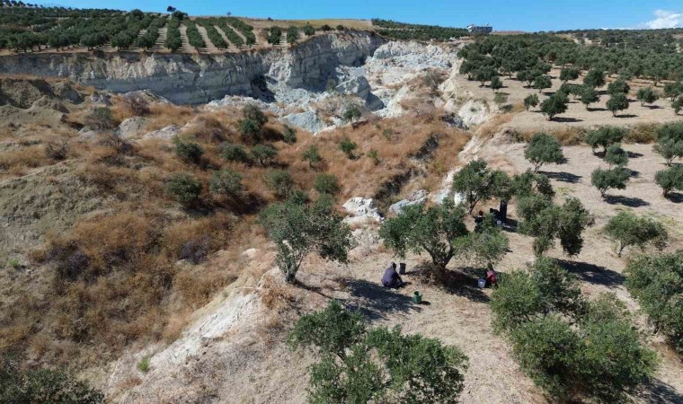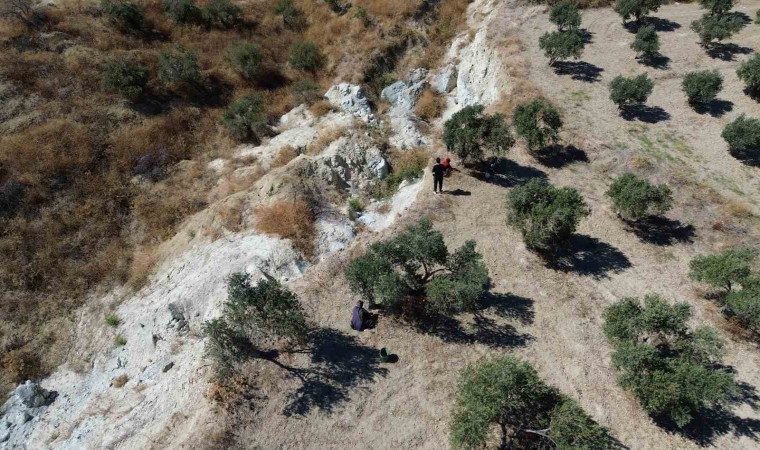 HATAY (İHA) – Hatay’da depremde kırılan fay hattının ikiye ayırdığı 33 dönümlük zeytin bahçesinde afetzede çiftçileri tedirgin eden hasat başladı.