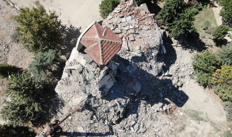 Ayakta kalan çatı dron ile havada görüntülendi.