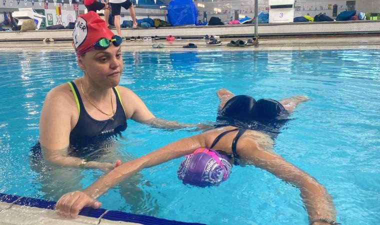 Kahramanmaraş’ta meydana gelen 6 Şubat depreminde enkazda kalan ve 2 bacağını kaybeden Medine, depremin izlerini yüzerek siliyor.