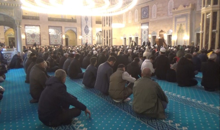 Kahramanmaraş 6 Şubat depremlerinin yıl dönümü ile aynı güne gelen Miraç Kandili’nde depremzede vatandaşlar, Abdülhamit Han Camii’ne akın etti.