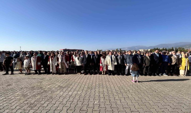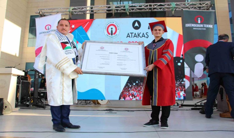 Kahramanmaraş merkezli depremlerde ağır hasar alan Hatay’da asrın felaketinin yaraları sarılmaya devam ediyor. Deprem sonrası büyük bir özverili çalışmayla asrın felaketinin yaralarını saran İskenderun Teknik Üniversitesi (İSTE), 2023-2024 eğitim öğretim yılının güz döneminde yüz yüze eğitime başlamıştı. İSTE’de bahar döneminin sona ermesiyle mezuniyet heyecanı yaşandı. Mezuniyet programı, İSTE Kütüphane binası önünde gerçekleştirildi. Saygı duruşu ve İstiklal Marşı’nın okunması ile başlayan tören protokol konuşmalarıyla devam etti.