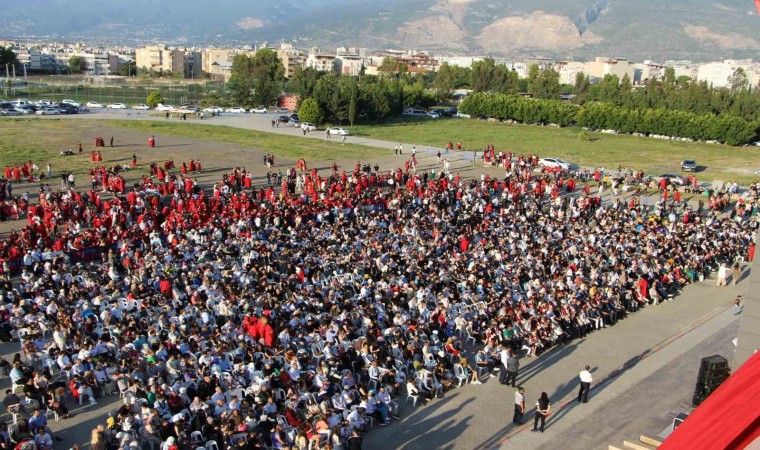 Depremin yaralarının sarıldığı Hatay’ın İskenderun ilçesinde düzenlenen mezuniyet töreniyle üniversiteden mezun olan öğrenciler, kep atmanın heyecanını yaşadılar.