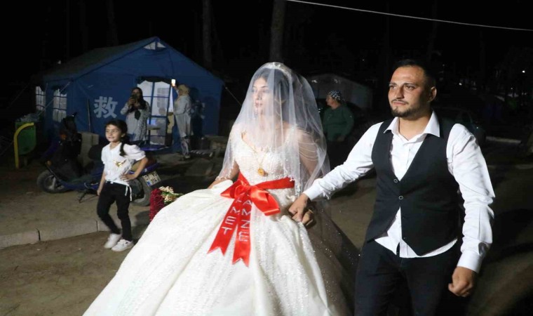Depremin vurduğu Hatay’da yaşayan depremzede çift, tanıştıkları çadır kentte yapılan düğünle hayatlarını birleştirdi.