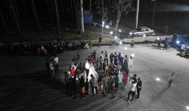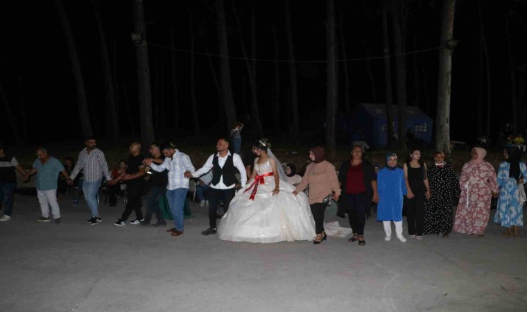 Kahramanmaraş merkezli depremlerde en büyük yıkım Hatay’da meydana geldi. Depremin vurduğu Kırıkhan ilçesinde vatandaşlar, yaşanan olumsuzluklara rağmen hayatlarını sürdürmeye devam ediyorlar. Asrın felaketinin ilk gününden itibaren Kırıkhan mesire alanı içerisinde bulunan çadır kentte yasamaya başlayan Gamze Seçkin ve Ahmet Atay çiftinin yolları bu çadır kentte kesişti. Genç çift hayatlarını, ilişkilerinin başladığı çadır kentte yapılan düğünle birleştirdi. Depremzede vatandaşlar, çadır kentte yapılan düğünde halay çekerek, çiftetelli oynayarak eğlendiler. Depremzede çiftin en büyük sorunuysa yaşayabilecekleri bir yuva olarak nitelendirdikleri konteynerlerinin olmaması.