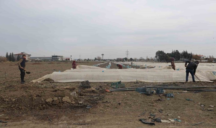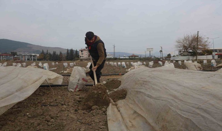 Türkiye’nin en önemli tarım şehirlerden biri olan Hatay’da depremzede çiftçi Servet Ertaş, kışın da üretim yapmak için tarlasına sera kuruyor. Antakya ilçesi Anayazı Mahallesi’nde yaşayan Ertaş, erkenci kabak yetiştirmek için 20 dönümlük tarlasını seraya çevirmeye başladı. Depremzede çiftçi, kabağı mart ayında kilosu 50 TL’den satmayı planlıyor.