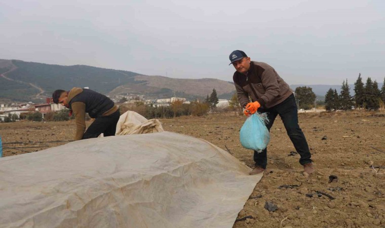 20 dönümlük tarlada kabağı erken yetiştirip erken hasat etmek istediklerini söyleyen çifçti Servet Ertaş, “Kabak ekimine hazırlık yapıyoruz. Yaklaşık 20 dönüme kabak ekeceğiz ve onun için hazırlık içerisindeyiz. Yılbaşından sonra ekime başlayacağız. Ektikten sonra da mart ayında hasat etmeyi düşünüyoruz. Erken olduğu için erkenci kabak oluyor. Önümüz kış olduğu için sera yapmamız lazım. Çünkü ortamı sıcak tutmamız gerekiyor. Erken yetiştireceğimiz için böyle yapmamız lazım. Bu kış don ve soğuk geçecek. O yüzden serayla koruyacağız. Kabağın hasadını yaptıktan sonra 50 TL’den satmayı düşünüyoruz. Çünkü mart ayı biraz erken oluyor ama ilk yetiştireceğimiz için biraz pahalı olur diye umut ediyoruz. Yaptığımız serada kabağı soğuktan ve dondan koruyacak şekilde planladık. Demirle ve iple de serayı sağlamlaştırıyoruz. O ipler sayesinde yağmurda ve soğukta çökmemesi için demir ve ip kullandık. Kabak ekimi yaptığımızda serayı açıp yapacağız. Üç örtüyle sera yapacağız, çünkü ancak soğuktan koruyacak. Hedefimiz kabağı erken yetiştirip erken hasat etmek olacak” ifadelerini kullandı.