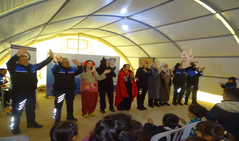 Malatya’da Toplum Destekli Polislik Şube Müdürlüğü ekipleri, yarı yıl tatilinde olan depremzede öğrenciler için sahne aldı. Polislerden oluşan tiyatro ekibi, çocukları hem eğlendirdi hem de bilgilendirdi.