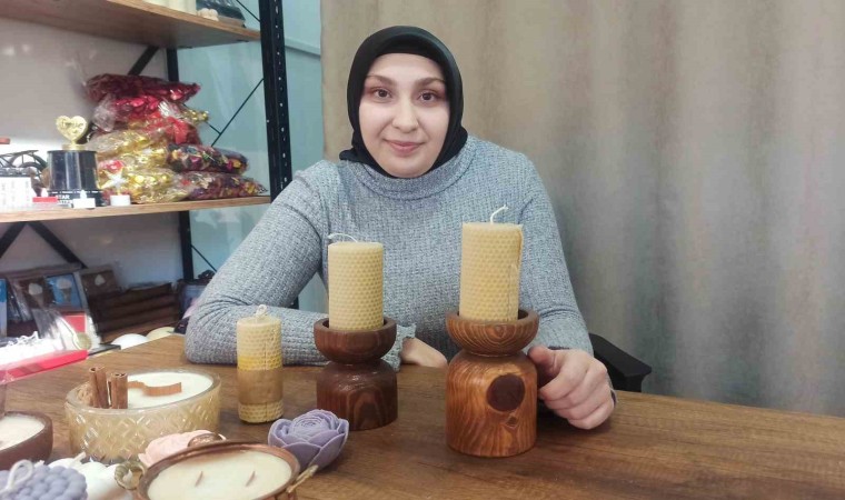 Geleneksel el sanatları mezunu olan usta öğretici Feyza Çayır, Kurtuluş Mahallesi Demirciler Çarşısı’nda kendine ait iş yerinde yaptığı el emeği göz nuru hediyelik ürünleri satarak ev ekonomisine katkı sağlıyor. Yaptığı ürünler üzerine atölye açmak istediğini söyleyen Çayır, "Burada el emeği göz nuru ürünler yaparak satışa sunuyorum. Kendi üretimim olan ürünler. Deprem sonrası sıkıntılar çeksekte, tekrardan ayağa kalktık ve işimizin başındayız. Yaptığım mumlar tamamen doğal. Bunların eğitimini verebileceğim atölye açmak istiyorum. Bez çantalar, kokulu mumlar yapıyorum. Mumlar tamamen doğal ve yanmadığı zaman bile koku verebiliyor. Odadaki kötü kokuları çekiyor. Bal mumları yapıyorum. Dışarıya koku vermiyor ama astım ve bronşite çok iyi geliyor. Yaptığım ürünler hep sanat üzerine. Doğal bal peteğini kendim sararaktan yapıyorum. Odada yakıldığı zaman kötü kokuyu çekiyor" dedi.