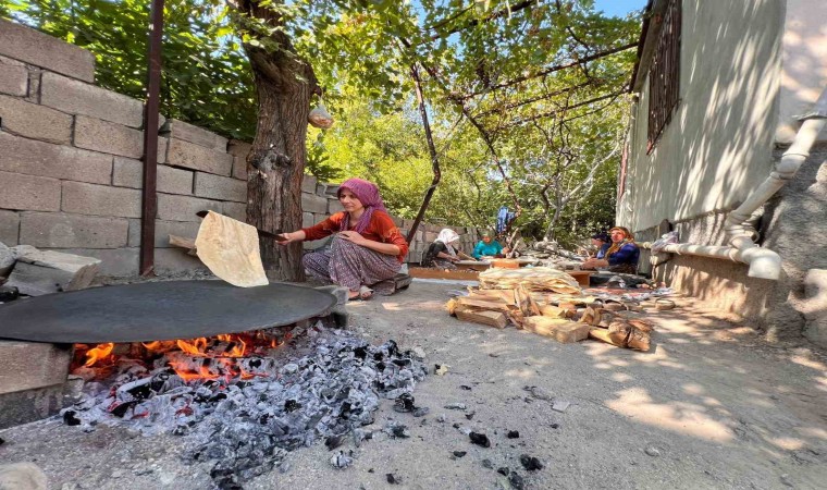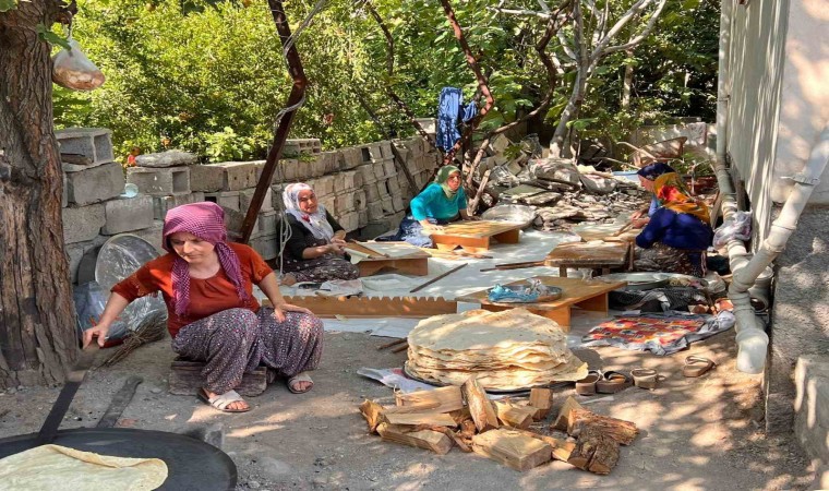 Ekmek yapımı için arkadaşına yardıma geldiğini söyleyen Ülker Kaba, “Onuncu ay geldiğinde bir araya gelip, birbirimize yardımcı oluruz. Ekmeğimizi yaparız. Kış için yılda bir kez yaparız. Yaklaşık 50 kilogram unu yaparız. Ne kadar durumun varsa o kadar yapılır. Ben amcamın kızı, komşum mesela ben ona geliyorum, o bana derken yardımlaşa yapıyoruz. Dolmada, içli köftede çok güzel olur. Biraz emek istiyor ama güzel iş. Sağlığın yerinde olur, arkadaşların da tam olursa sıkıntı olmuyor” ifadelerini kullandı.