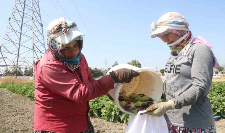 Pazardaki fiyatına oranla tarlada patlıcanın daha ucuza alıcı bulduğuna dikkat çeken Gülhan Özkurt, “Herkes mecbur çıkacak işini bitirecek ama emeğini çıkarmak da kolay değil. Sabah saat 4’te güneş aydınlanmadan telefon ışığını açıp koparıyoruz. Tarlada çalışırken aşırı zorlanıyoruz. Patlıcanı tarladan 6 liraya veriyoruz ama emeğimizin karşılığını alamıyoruz. 6 lira çok düşük bir fiyat. Pazarda fiyat çok yüksek. Çünkü; işçiler, ilaç, gübre, su, sıcaklık yani işin içinden çıkamıyoruz. Çok şükür bu sene bereketli” dedi.