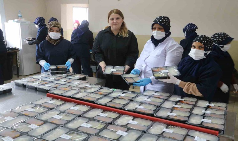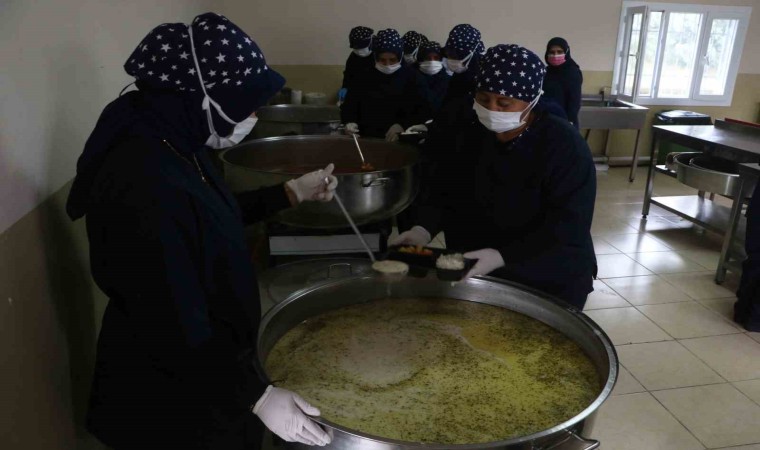 Depremin vurduğu Hatay’da hayırseverlerin yardımlarıyla depremzede 15 kadın tarafından pişirilen 3 çeşit yemek, günde 500 kişinin iftar yemeği oluyor.