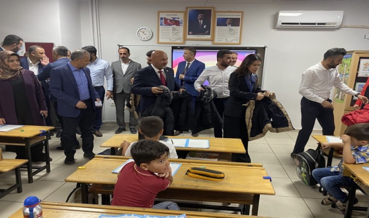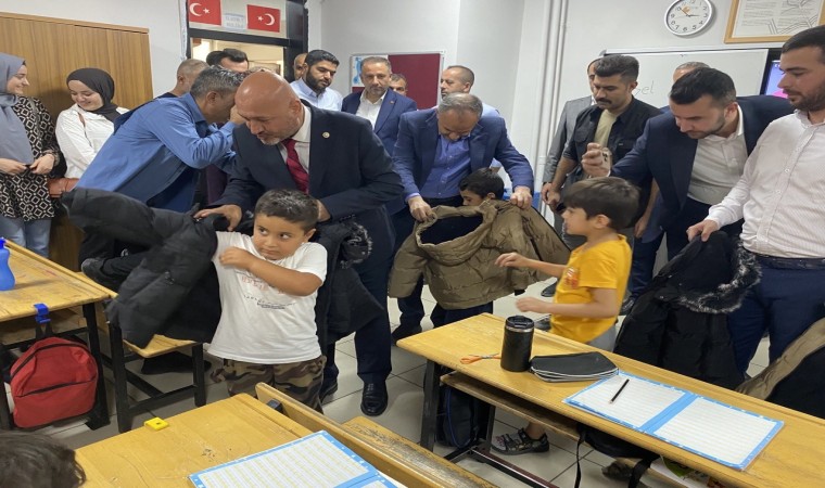 Deprem bölgesi Adıyaman’da, öğrencilere mont yardımı yapıldı.
