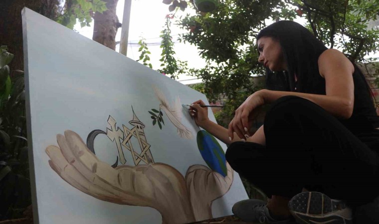 Hatay’da yaşayan depremzede ressam Derya Tatlıcı, afetzede çocuklar yararına çizdiği tabloyu 40 bin TL’ye satarak elde etiği parayla konteyner ve çadır kentlerde yaşayan çocuklara oyuncak dağıttı.