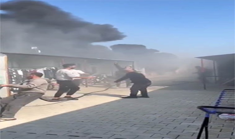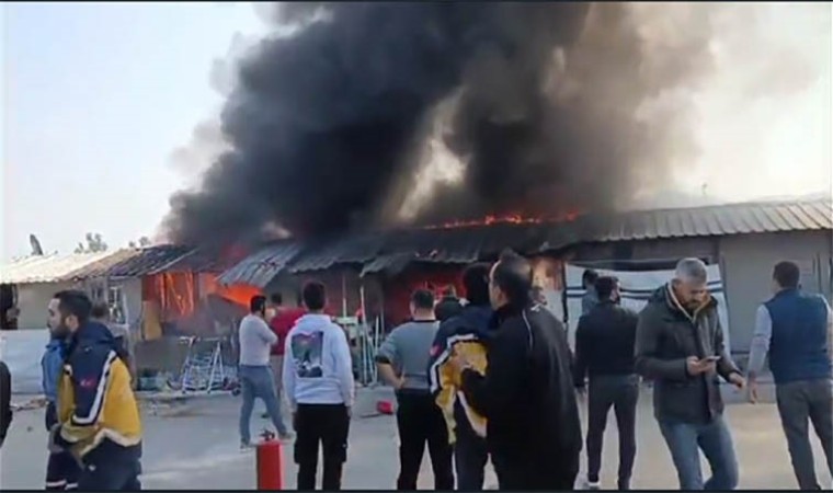 Hatay’da geçici yaşam merkezinde çıkan yangında 3 konteyner alevlere teslim oldu.