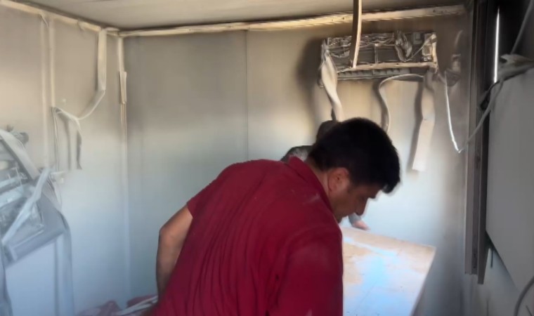 Hatay’ın Hassa ilçesinde çıkan yangından dolayı konteyner kullanılmaz hale geldi.