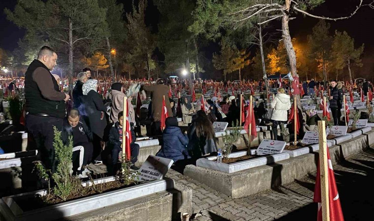 Kahramanmaraş merkezli meydana gelen depremlerde hayatını kaybeden vatandaşların yakınları mezarlığa gelerek yakınları için Kur’an okuyup dualar etti.