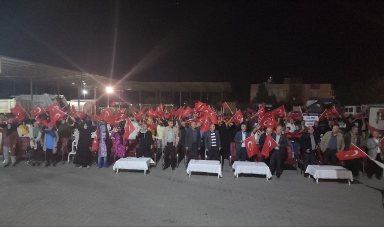Kahramanmaraş merkezli depremlerde büyük yıkım yaşanan Hatay’ın Hassa ilçesinde depremzede vatandaşlar, İsrail zulmüne tepki için bir araya geldi. Hassa Belediyesi tarafından ‘Filistin’de Soykırıma Hayır’ sloganıyla İsrail’e tepki için düzenlenen program belediye bahçesinde gerçekleştirildi. Kur’an-ı Kerim tilavetiyle başlayan program, vatandaşların İsrail’e tepki söylemleriyle devam etti.