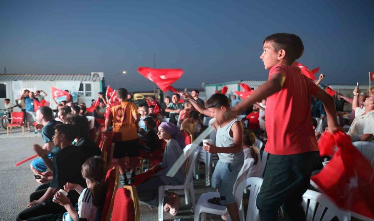 Hatay’da depremzede vatandaşlar, konteyner kente kurulan dev ekranda milli maç heyecanını yaşadılar. Müsabakanın galibiyetle sona ermesiyle afetzede vatandaşlar coşkulu dakikalar yaşadılar.