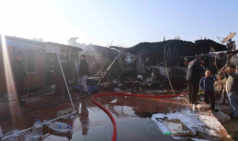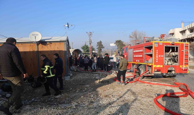 Hatay’ın Defne ilçesinde depremzedelerin kaldığı 4 konteyner yanarak kullanılamaz hale geldi.