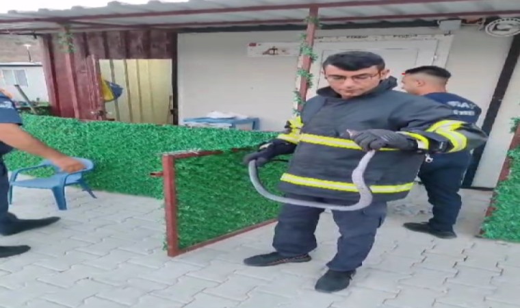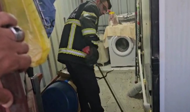 Hatay’ın Antakya ilçesinde depremzede vatandaşları yaşadığı konteynere giren yılan, itfaiye ekipleri tarafından yakalanarak doğaya bırakıldı.