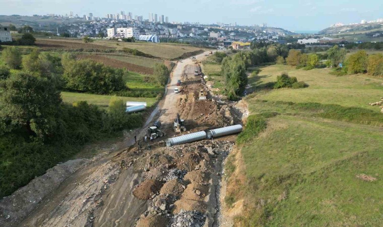 Samsun Büyükşehir Belediyesi, İlkadım ilçesi Vatan Caddesi’nde devam eden imar yolu çalışmaları kapsamında dere geçişlerine çelik boru menfezler yerleştiriyor.