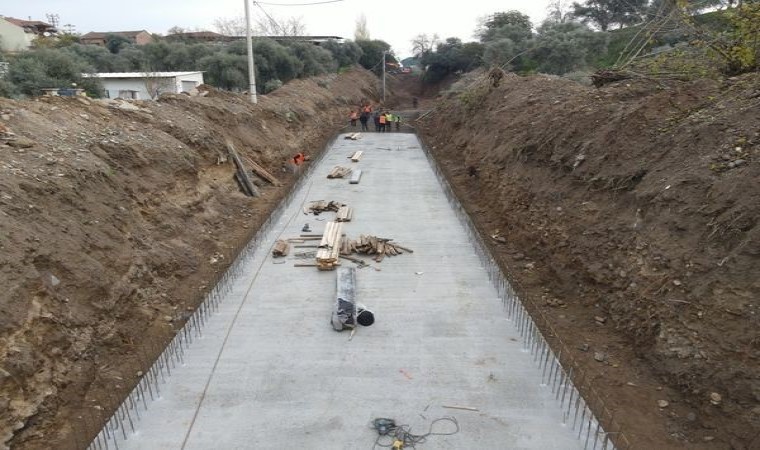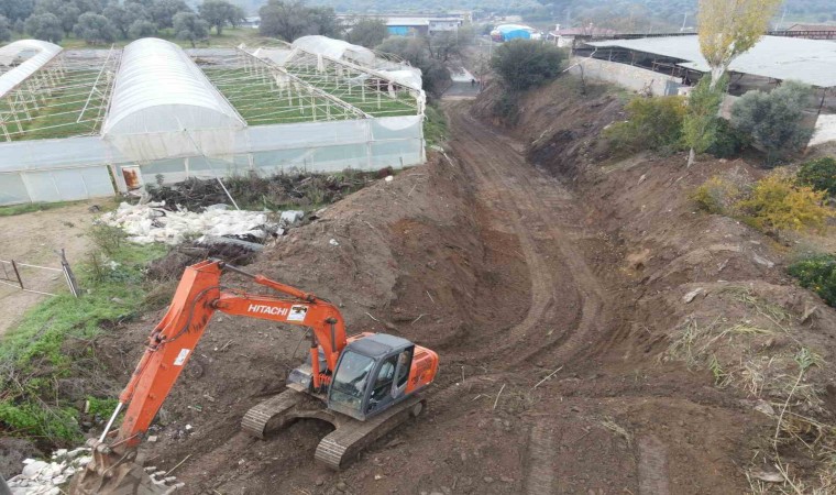 Aydın’ın Nazilli ilçesinde yağışlar sonrası yağmur sularının kontrol altına alınması ve taşkınların önünü geçilmesi için dere ıslahları devam ediyor.