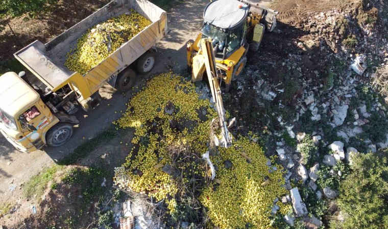 Limonların çevredeki narenciye bahçelerine zarar vermemesi ve bitki hastalıklarına sebep olmaması için iş makinelerine yüklenerek imha edileceği belirtildi. Yaklaşık 10 ton limon ilçe tarım müdürlüğü ekiplerinin gözetiminde imha edilmek üzere kamyona yüklenirken, o anlar havadan görüntülendi.