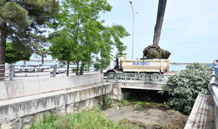 Samsun Büyükşehir Belediyesi Su ve Kanalizasyon İdaresi (SASKİ) Genel Müdürlüğü ekipleri, yağmur sularını denize tahliye eden kanal ve dere yataklarını temizledi.