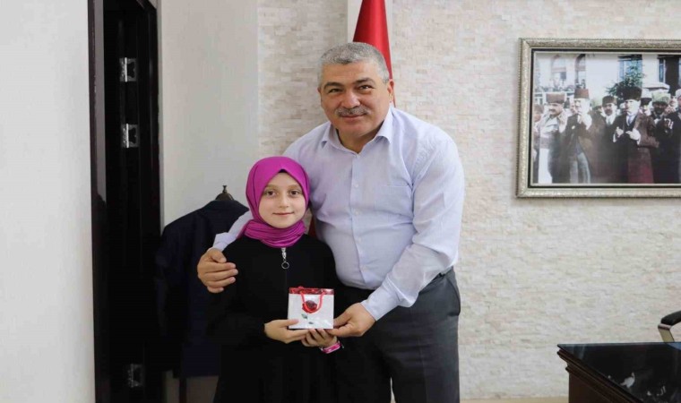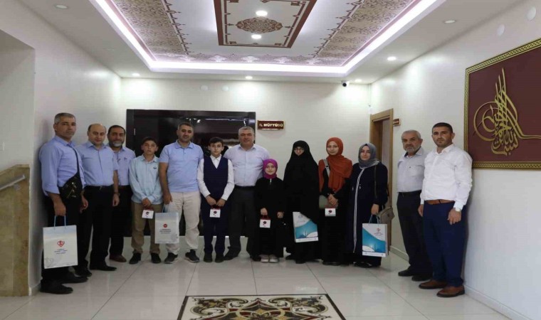Yarışmalarda dereceye giren öğrencileri ve hocalarını makamında kabul eden İl Müftüsü Altunkaya, başarılarından dolayı öğrencileri tebrik ederek hediye takdiminde bulundu.