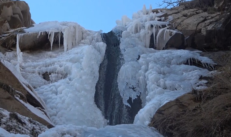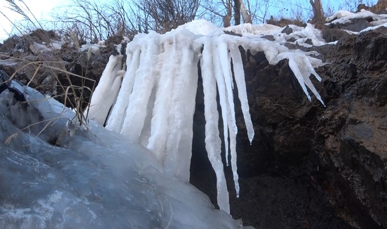 Muş’ta son günlerde etkili olan dondurucu soğuklar nedeniyle nehir, dere, gölet, çeşme ve şelaleler buz tuttu. Muş’ta hava sıcaklığının sıfırın altında düşmesiyle merkeze 15 km uzaklıkta ki Derecik Köyünde donan şelalede metrelerce uzunluktaki buz sarkıtları oluştu. 6 metre uzunluğunda ki bu şelalede oluşan buz sarkıtları adeta görsel şölen sunuyor. Kartpostallık görüntülerin oluştuğu şelale, ziyaretçilerini bekliyor.