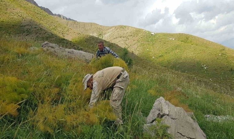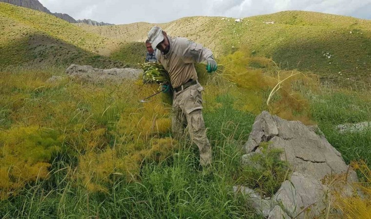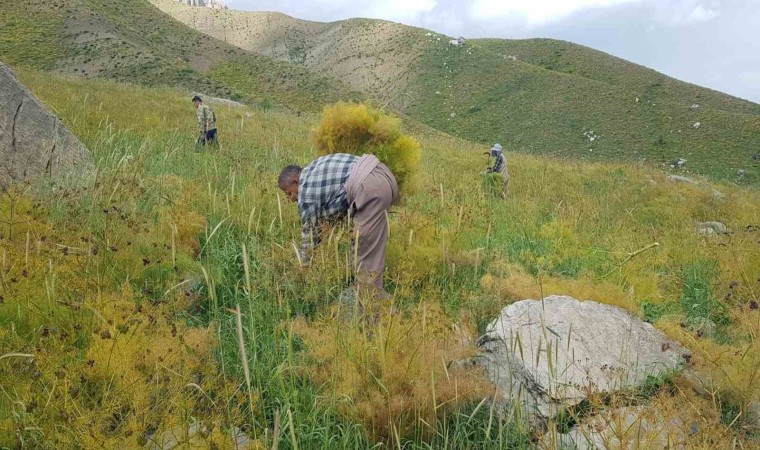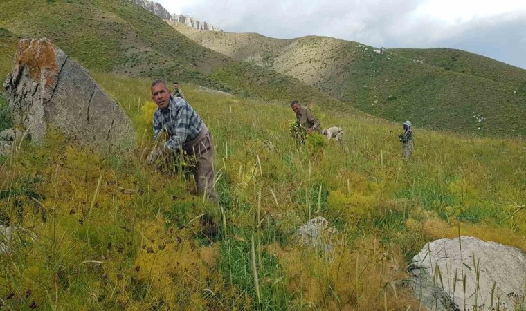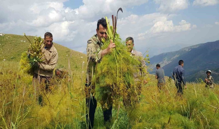 Hakkari’nin Derecik ilçesinde vatandaşlar, havaların ısınmasıyla birlikte dağlarda kilometrelerce yol kat ederek hayvanları için kuzu otunu biçiyor.