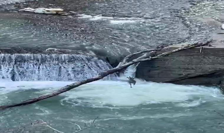 Zonguldak’ın Devrek ilçesinde bir karaca, dere içerisinde ilerlerken görüntülendi.