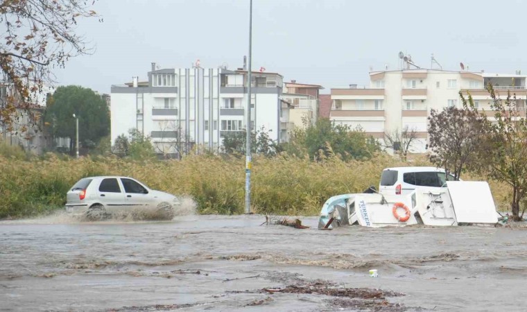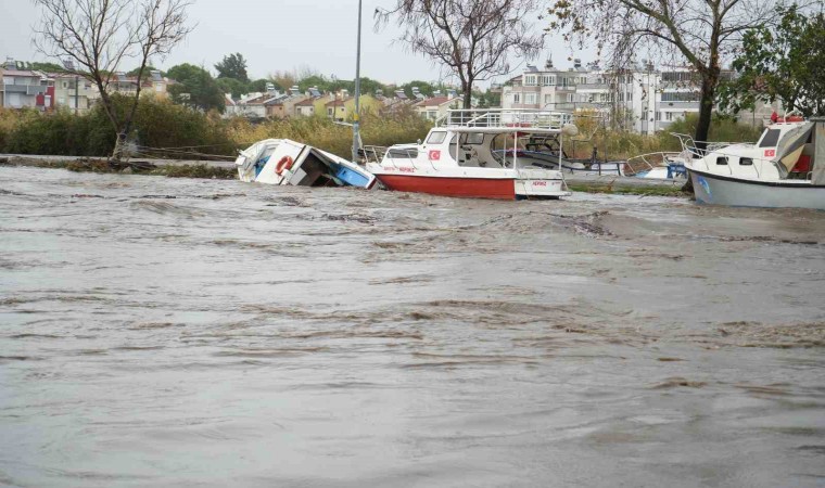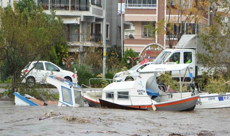 Balıkesir’in Edremit ilçesinde gece saatlerinden itibaren etkili olmaya başlayan lodos fırtınası ve sağanak yağışa birde Kazdağları’ndaki karların erimesi eklenince dereler taştı, yollar sular altında kaldı. Fırtına nedeniyle dereye sığınan tekneler akıntı ile battı. Su baskınlarında evlerinde kalan 11 kişi Balıkesir Büyükşehir Belediyesi ekipleri tarafından kurtarıldı.
