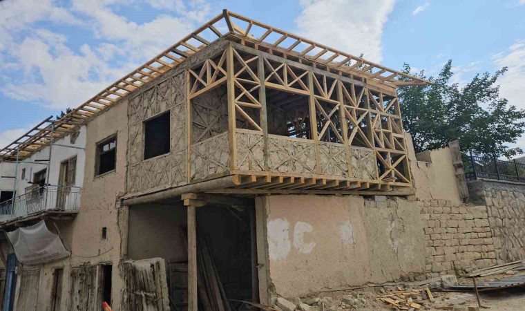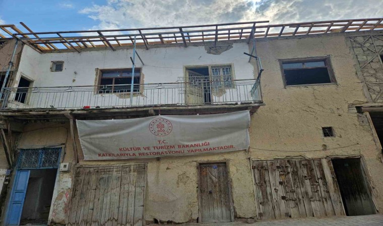 Malatya’nın Darende ilçesinde kültür varlığı olarak tescillendikten sonra restorasyona alınan eski otelde ki çalışmalar sürüyor.