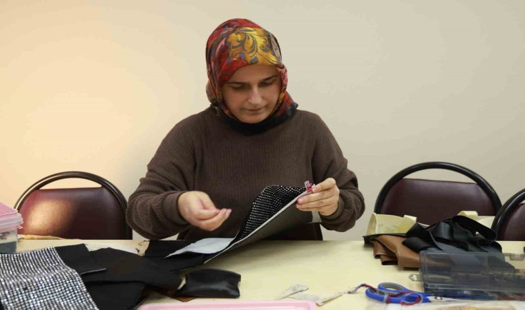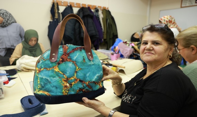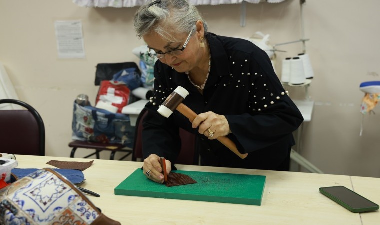 Kocaeli Büyükşehir Belediyesi Meslek ve Sanat Eğitimi Kursları’ndaki ’Deri Çanta ve Aksesuar Yapımı Branşı’ kurslarına katılanlar, deri ve kumaş çanta yapımının inceliklerini öğreniyor.