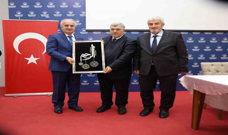 Müftü Amil’in ardından kürsüye çıkan Prof. Dr. Hasan Keskin katılımcılarla önemli bilgiler paylaştı. Derince Belediye Başkanı Zeki Aygün, konferansın ardından Prof. Dr. Hasan Keskin’e teşekkür ederek, hediye takdiminde bulundu.