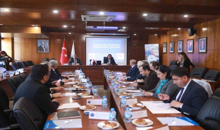 Dokuz Eylül Üniversitesi Danışma Kurulu’nun; üniversite-sanayi-kamu iş birliği noktasında ilişkileri geliştirmek, sektörün ihtiyaçları doğrultusunda akademik çalışmalara ve öğretim faaliyetlerine yön vermek üzere İzmir’in ve Türkiye’nin ekonomisinde söz sahibi kurumların temsilcilerini bir araya getirdiği danışma kurulu toplantısı, Dokuz Eylül Üniversitesi Senato Salonu’nda gerçekleştirildi. Toplantıya İzmir Vali Yardımcısı Dr. Fatih Kızıltoprak, Dokuz Eylül Üniversitesi Rektör Yardımcıları Prof. Dr. Esra Bukova Güzel ve Prof. Dr. Hasan Murat Tanarslan, DEÜ Genel Sekreteri Engin Basmacı, İzmir Defterdarı Şenol Gezer, İzmir Kalkınma Ajansı Proje Uygulama ve İzleme Birim Başkanı Arın Hünler, Ege İhracatçı Birlikleri Genel Sekreteri İ.Cumhur İşbırakmaz, İzmir Çalışma ve İş Kurumu İl Müdürü Kadri Kabak, İzmir İl Sağlık Müdürü Doç. Dr. Emre Erkuş, EBSO Yönetim Kurulu Başkanı Yardımcısı Hakan Ürün, İZTO Meclis Başkanı Selami Özpoyraz, Arkas Holding CIO’su Mert Oruz, Folkart Yönetim Kurulu Başkanı Mesut Sancak ile DEÜ’ye bağlı birimlerin temsilcileri katıldı. Toplantıda, öğretim faaliyetleri, kamu ve özel sektördeki istihdam ihtiyacı, üniversite-sanayi-kamu işbirliği fırsatları, yenilenebilir ve yeşil enerji sistemleri, sağlık turizmi ve Ar-Ge faaliyetleri konuları konuşuldu.