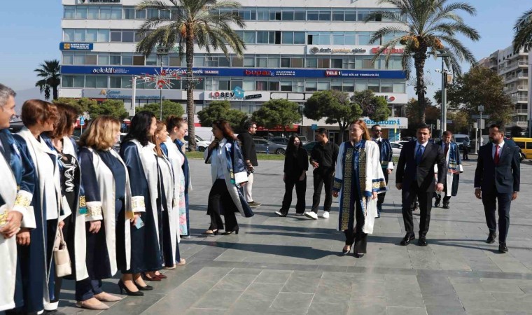Türkiye’nin köklü eğitim kurumlarından olan Dokuz Eylül Üniversitesinin (DEÜ) 2023-2024 akademik yılı açılışı nedeniyle İzmir Cumhuriyet Meydanı’nda bir tören düzenlendi. Atatürk anıtına çelenk sunulmasıyla başlayan törende, DEÜ Rektörü Prof. Dr. Nükhet Hotar tarafından bir konuşma gerçekleştirildi. Üniversite üst yönetimi, akademisyenler ve öğrencilerin katıldığı çelenk sunma töreninde, DEÜ’nün uluslararasılaşma hedefleri ve yaptığı hizmetler vurgulandı.