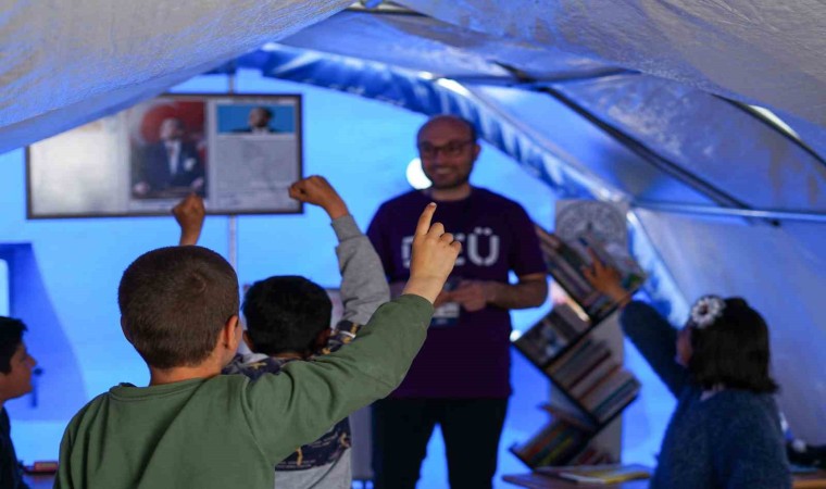 Dokuz Eylül Üniversitesi’nin (DEÜ) farklı birimlerinden akademisyen ve gönüllü öğrencilerinin, Kahramanmaraş depremlerinin ardından afet bölgesindeki yardım çalışmaları hız kesmeden sürüyor. Bölgedeki çadır ve konteyner kentlerde, depremden etkilenen çocuklara yönelik DEÜ eliyle başlatılan ‘Hepimiz çocuktuk’ adlı önemli bir proje de yürütülüyor. Proje ile DEÜ, çocukların bilişsel, sosyal ve duygusal gelişimini destekleyecek eğitsel faaliyetler ile miniklerin yanında yer alıyor; çocukların gelişimine katkı sunuyor.